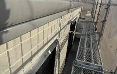 ビニール養生の作業が終わり、現在は外壁の塗装工事が始まりました。