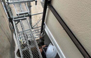 それと並行して、屋根の塗装工事や他の面のビニール養生作業も進めております。