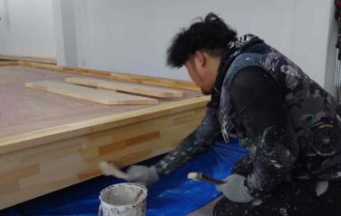 ボードを平らにする為に、凸凹部分にパテを使用して埋めていきます。