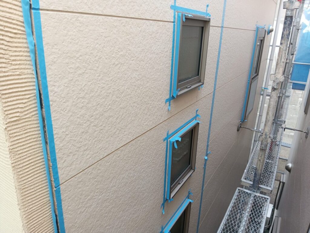 新しいシーリング材で外壁が汚れない様に、きっちりとテープを貼って進めていきます。