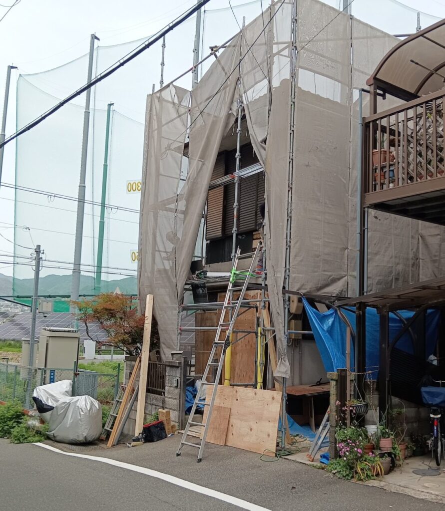 足場工事が終わり、現在は大工さんによるリフォーム工事を進めております。