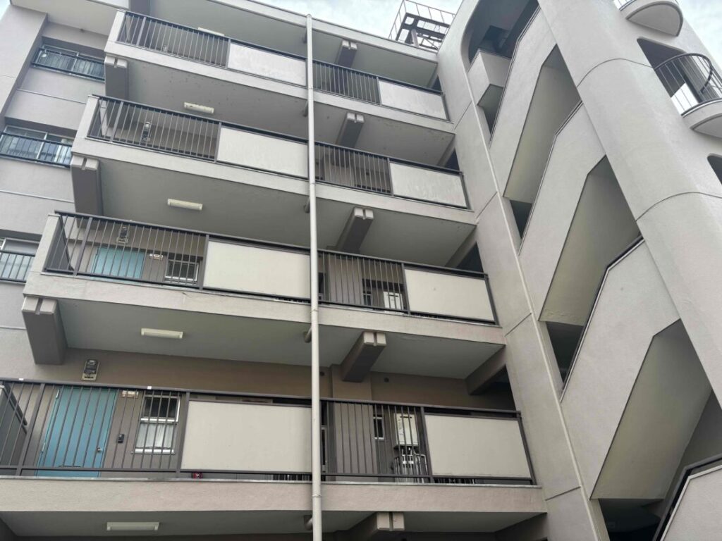 大きく太くひび割れている部分の外壁補修工事や、共用廊下の床が剥がれている部分の補修工事などを行いました。