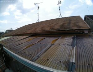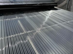 新しい波板にはすりガラスの様な模様が入っておりますので、目隠しの役割も兼ねて光はしっかりと通す事ができる波板を使用しております。