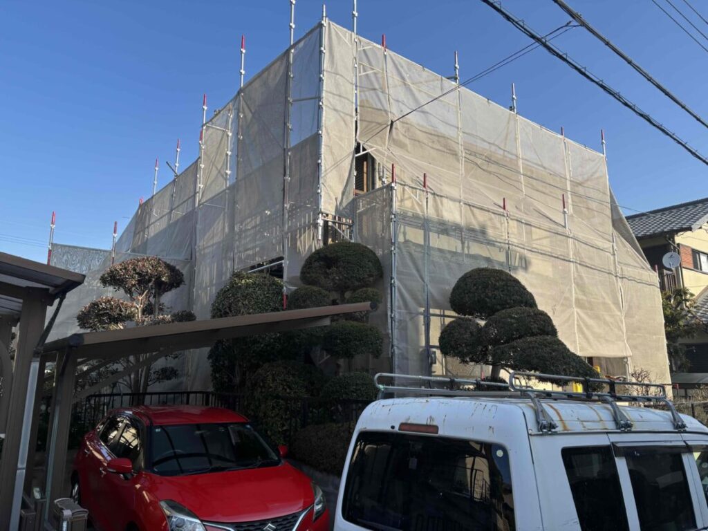 ビニール養生作業と並行して屋根の下塗り塗装を進めております。 塗料の飛散を考えてしっかりとビニール養生を行います。 &n...