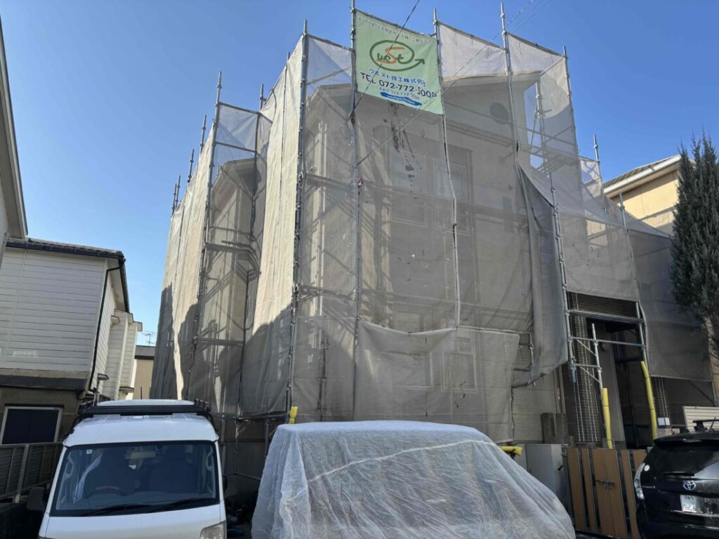 大阪府豊中市T様邸 台風の足場対策を行いました