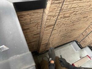 先日の足場工事が終わり、本日からはシーリングの撤去・打ち替え工事を開始しております。