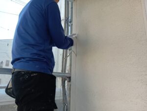 先日の足場工事が終わり、現在はシーリングの撤去・打替工事を進めております。