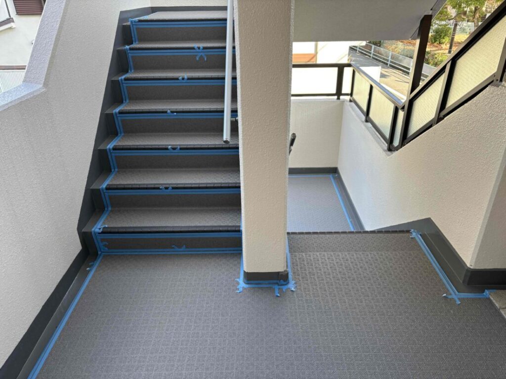 兵庫県伊丹市マンション 外部階段の塗装工事を進めております