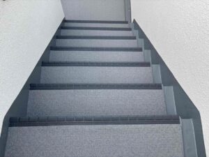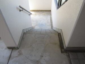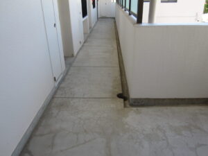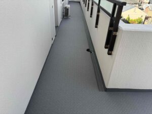 兵庫県西宮市マンション 長尺シート貼り工事を進めております