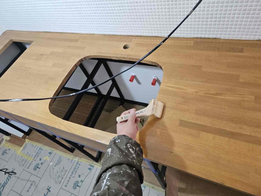 大工さんが作成した木製家具の塗装です。