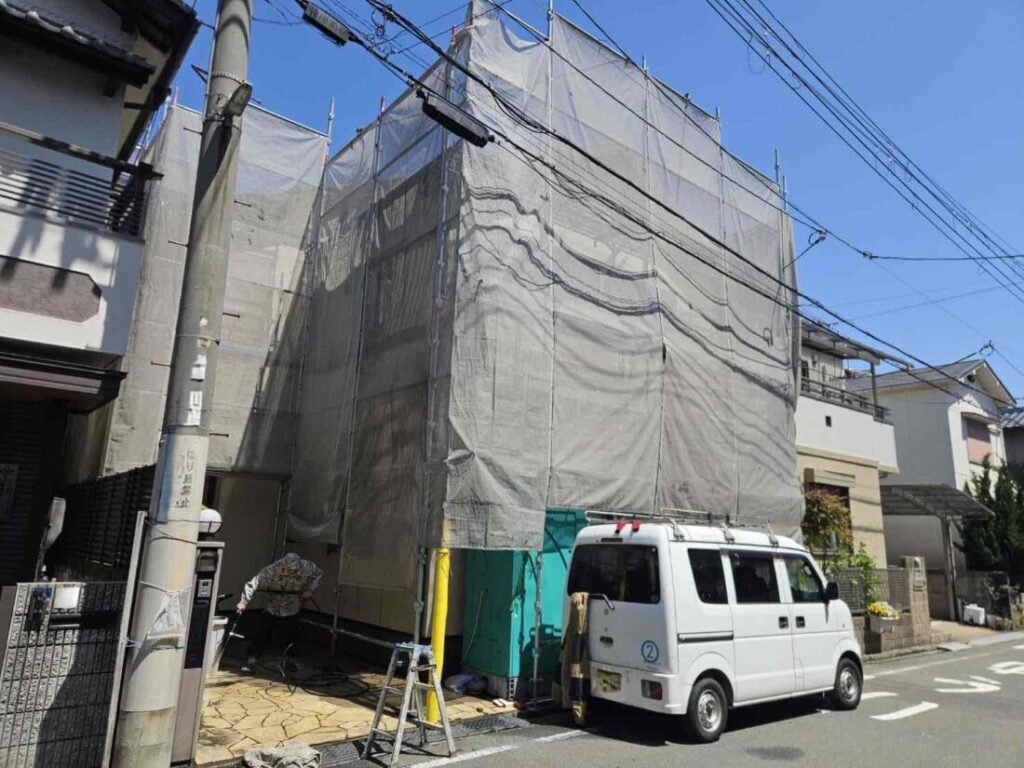 大阪府茨木市T様邸 外壁塗装と屋根塗装工事を開始しております