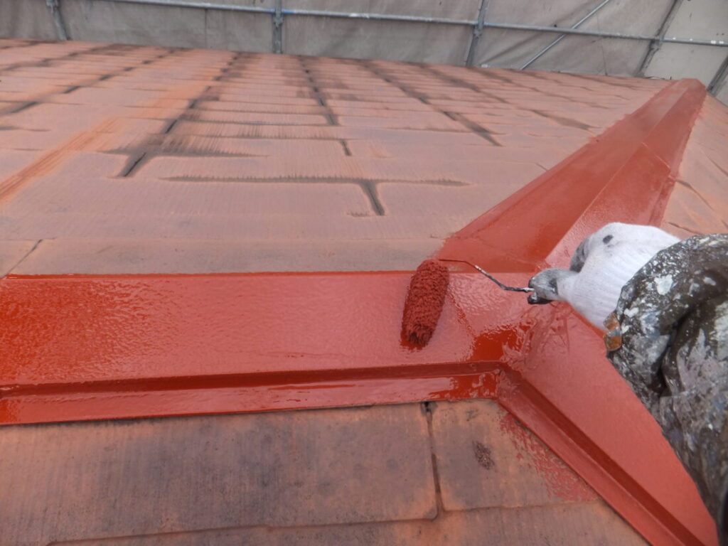 • 屋根の下塗りが終わると縁切り部材のタスペーサーを挿入していきます