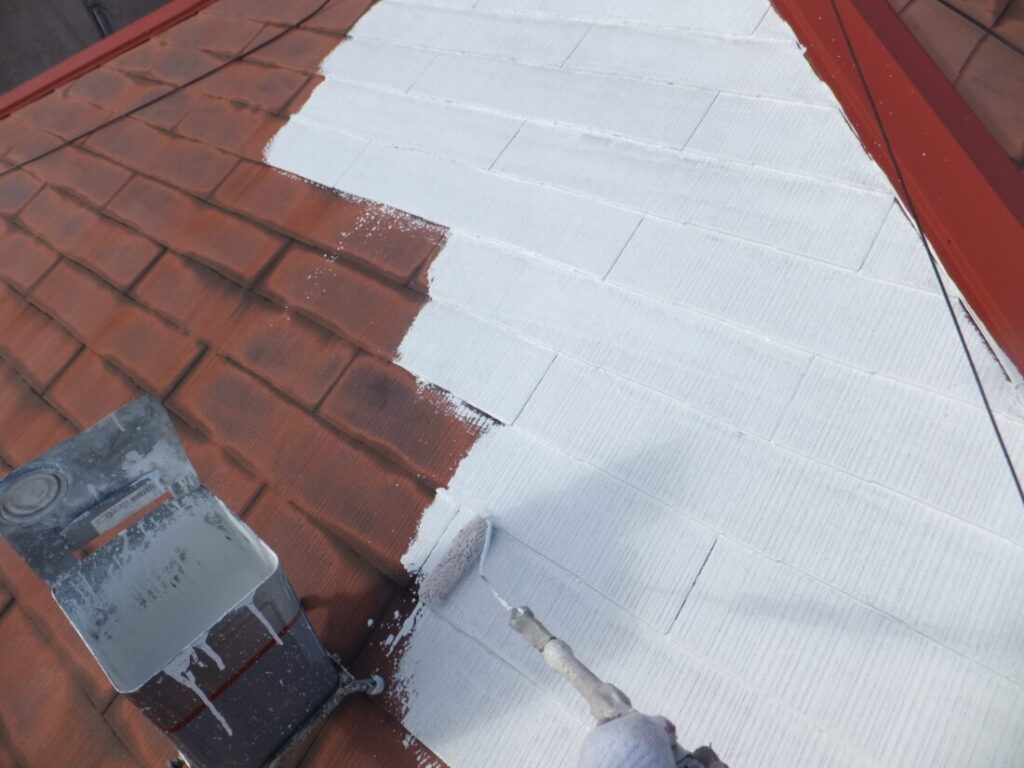 • 遮熱塗料用の白色の下塗り塗料を使用しております