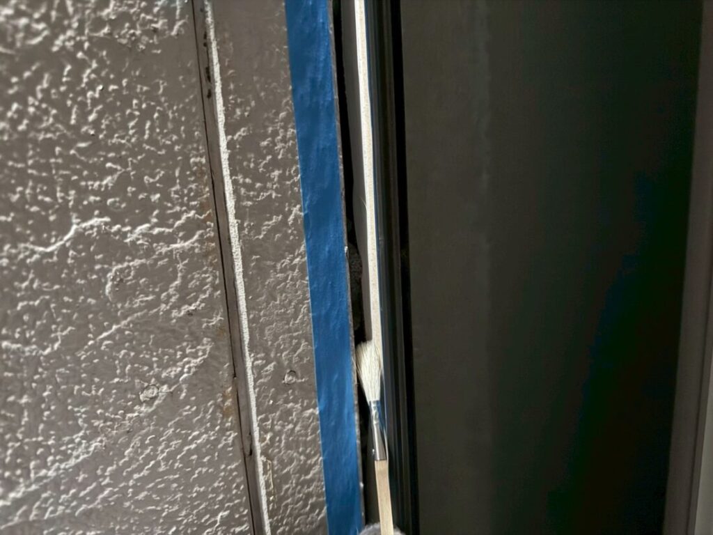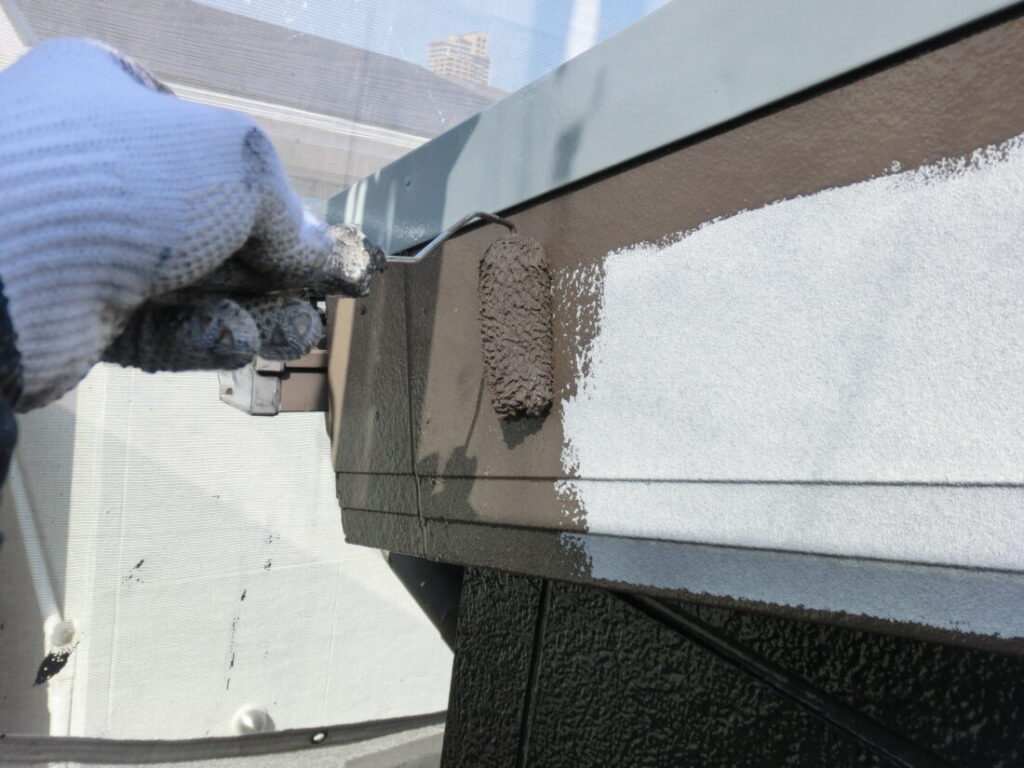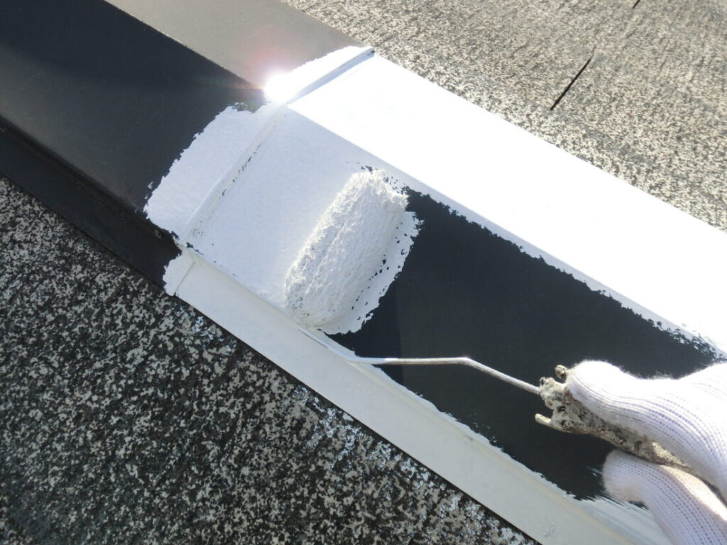 付帯部分の鉄部に錆止め塗料を塗装していきます