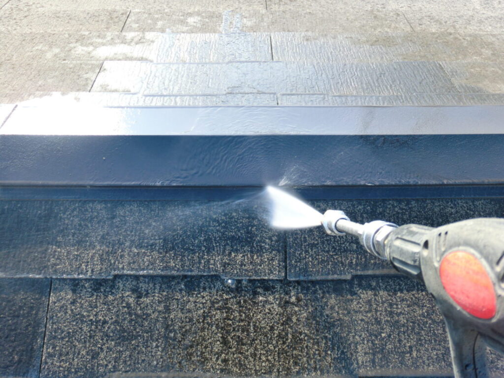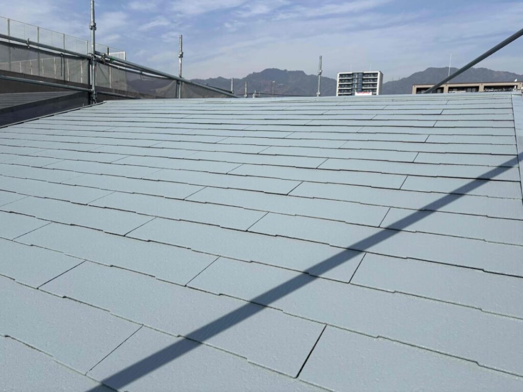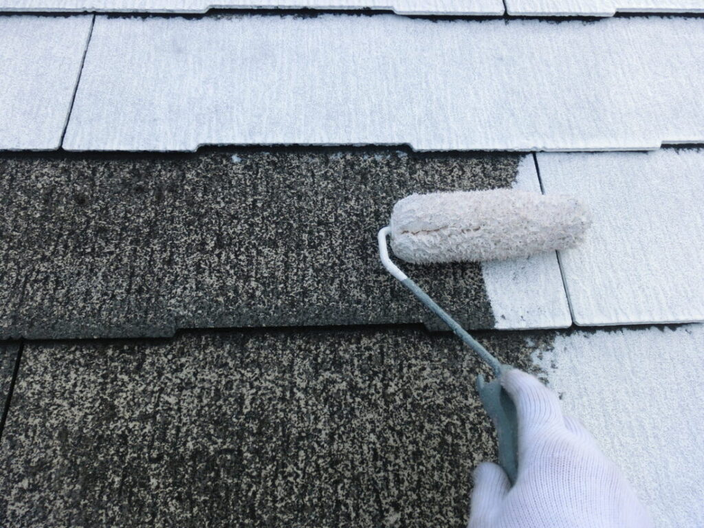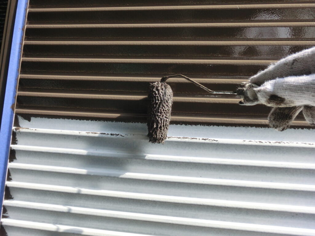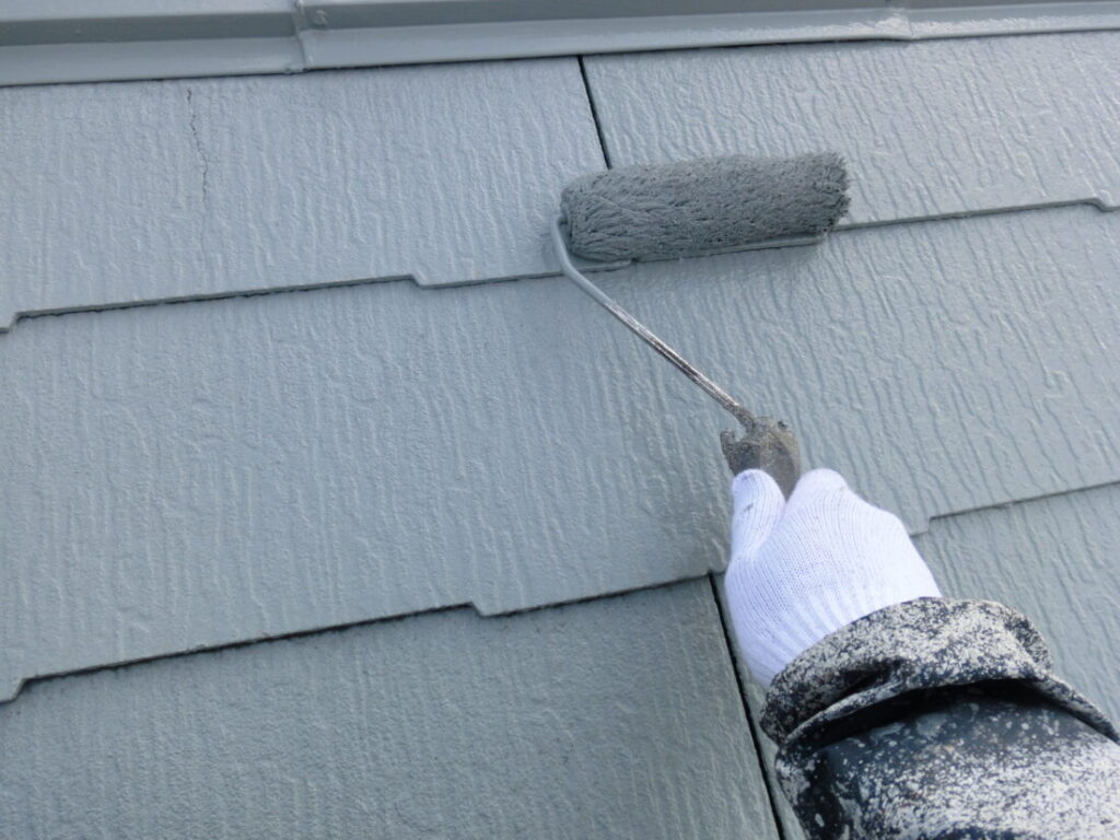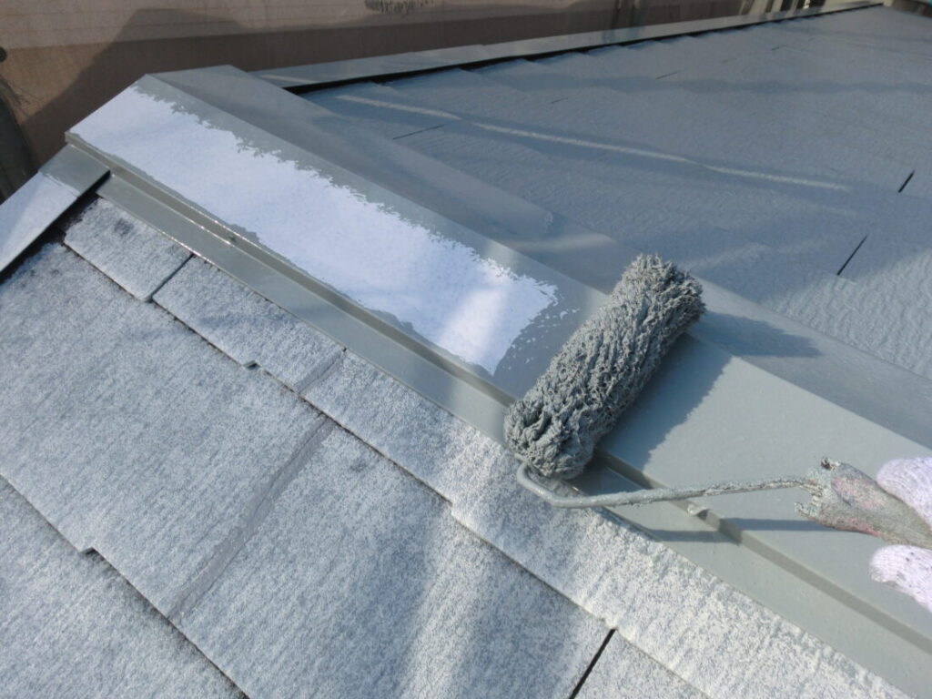 屋根の上塗り塗装です。屋根も3回塗りが基本です