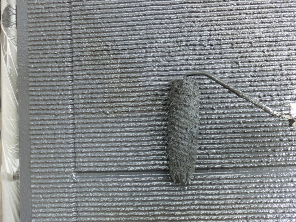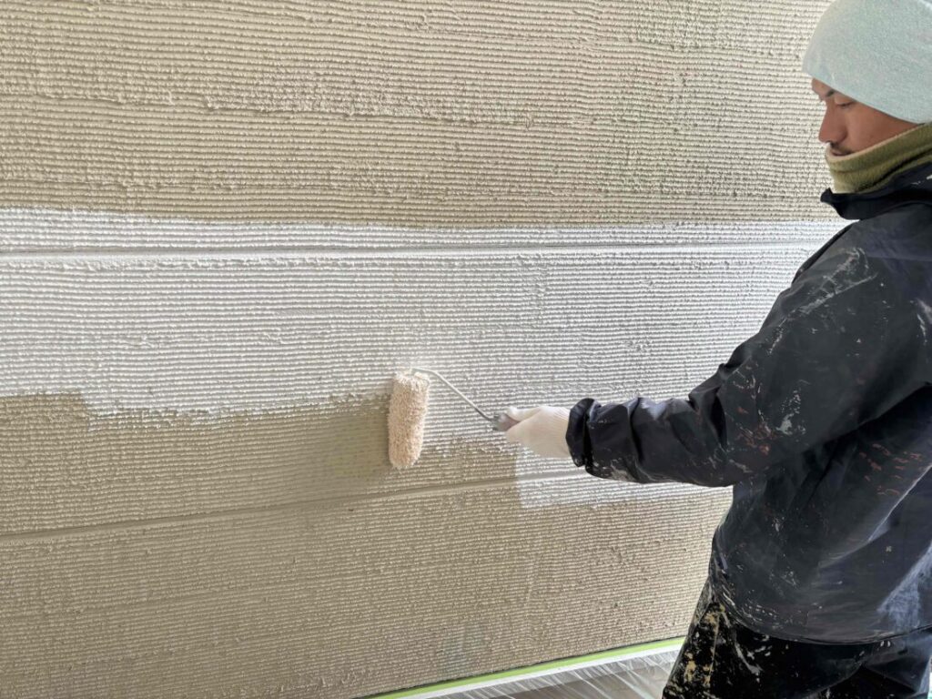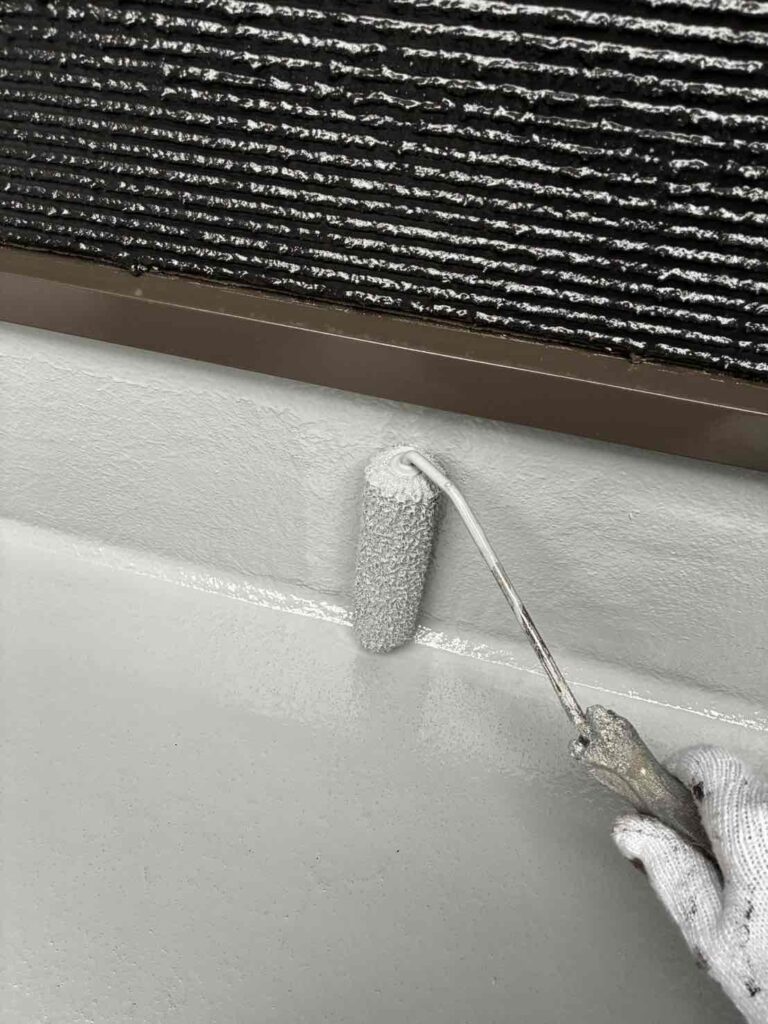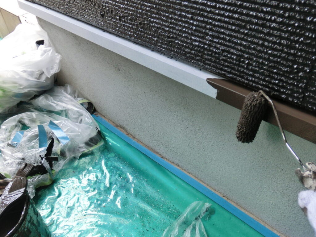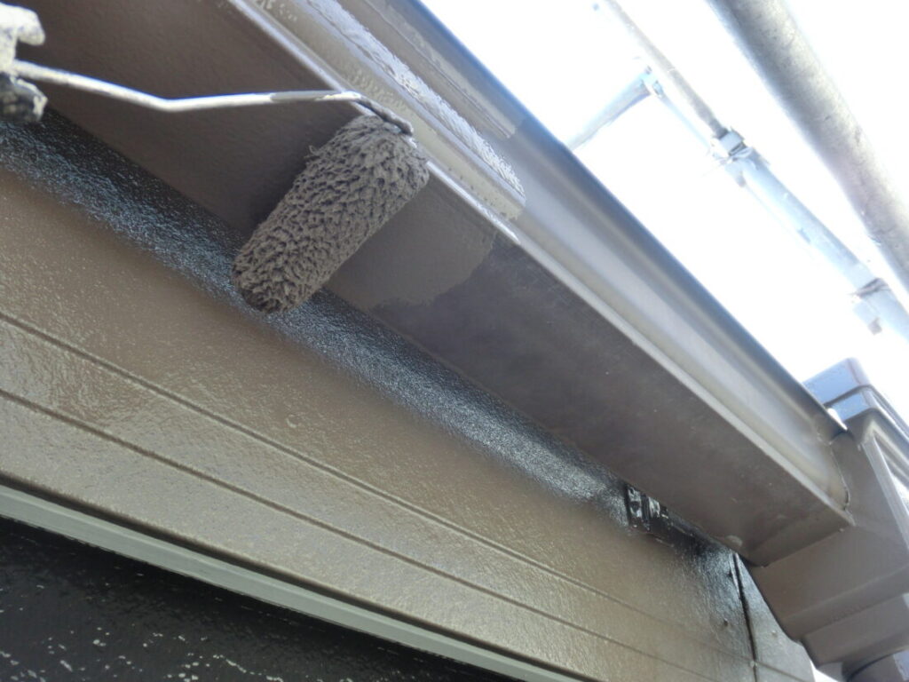 外壁の上塗り塗装です。外壁は3回塗りが基本です