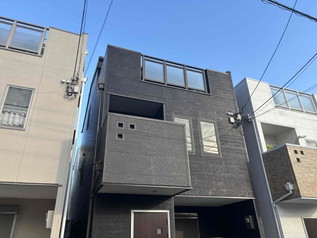黒系の色を基調とした外壁と、それに合う付帯部分の色がぴったり合っていて、凄くカッコいい雰囲気の仕上がりとなり、お客様にもご満足を頂きました。