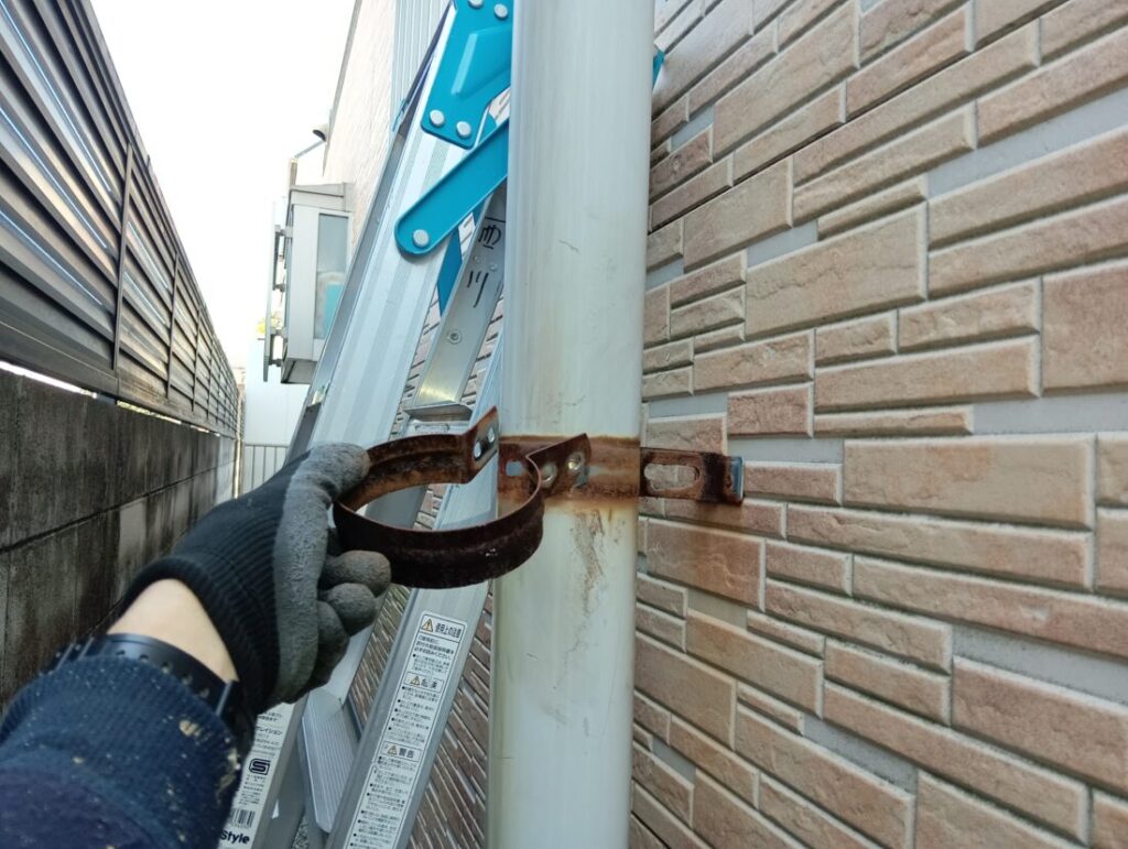 錆びて穴が開いている配管金具を新しいステンレスの物に交換を行います