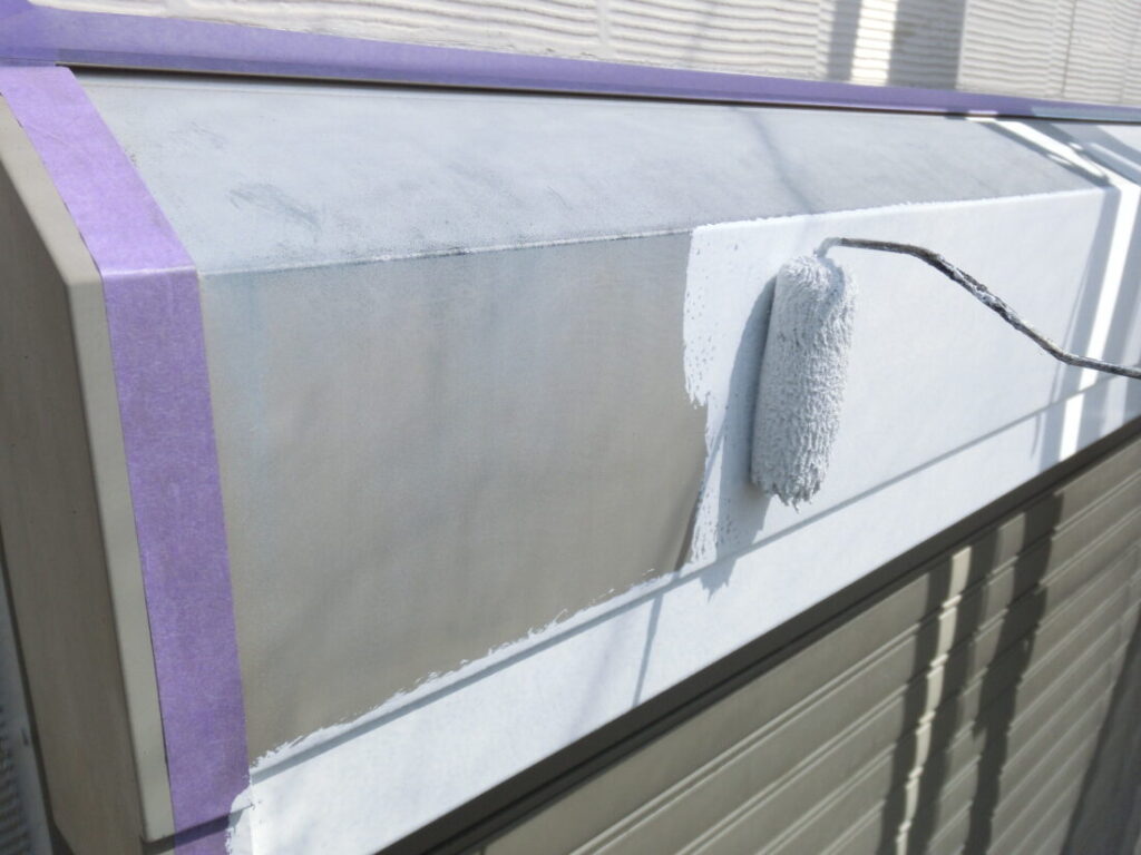 付帯塗装部分の破風板にも下塗り塗装を行います