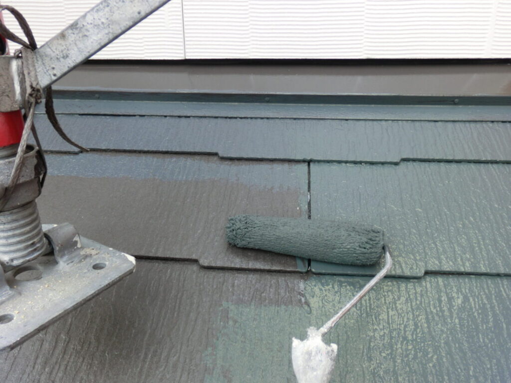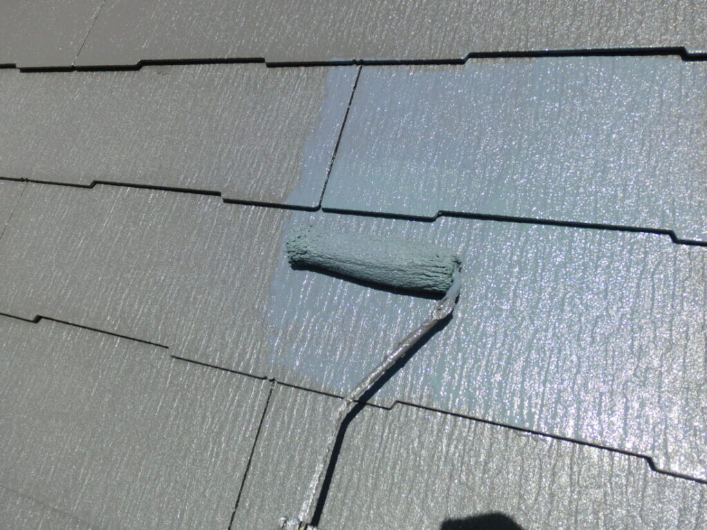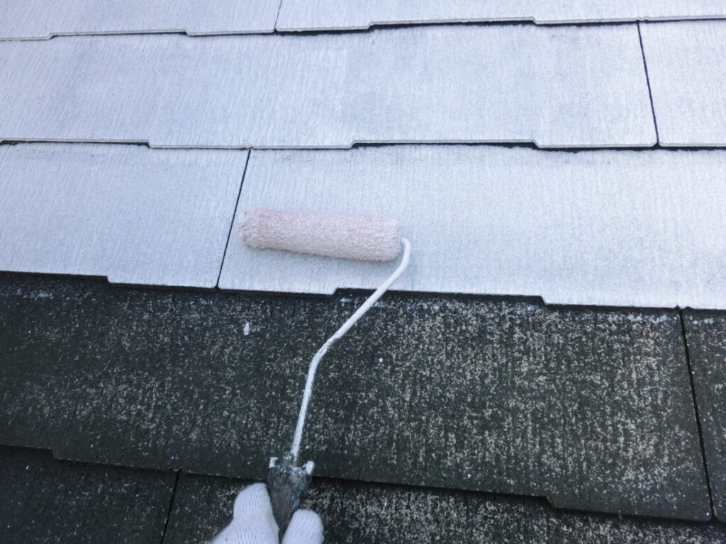 屋根の中塗り塗装です