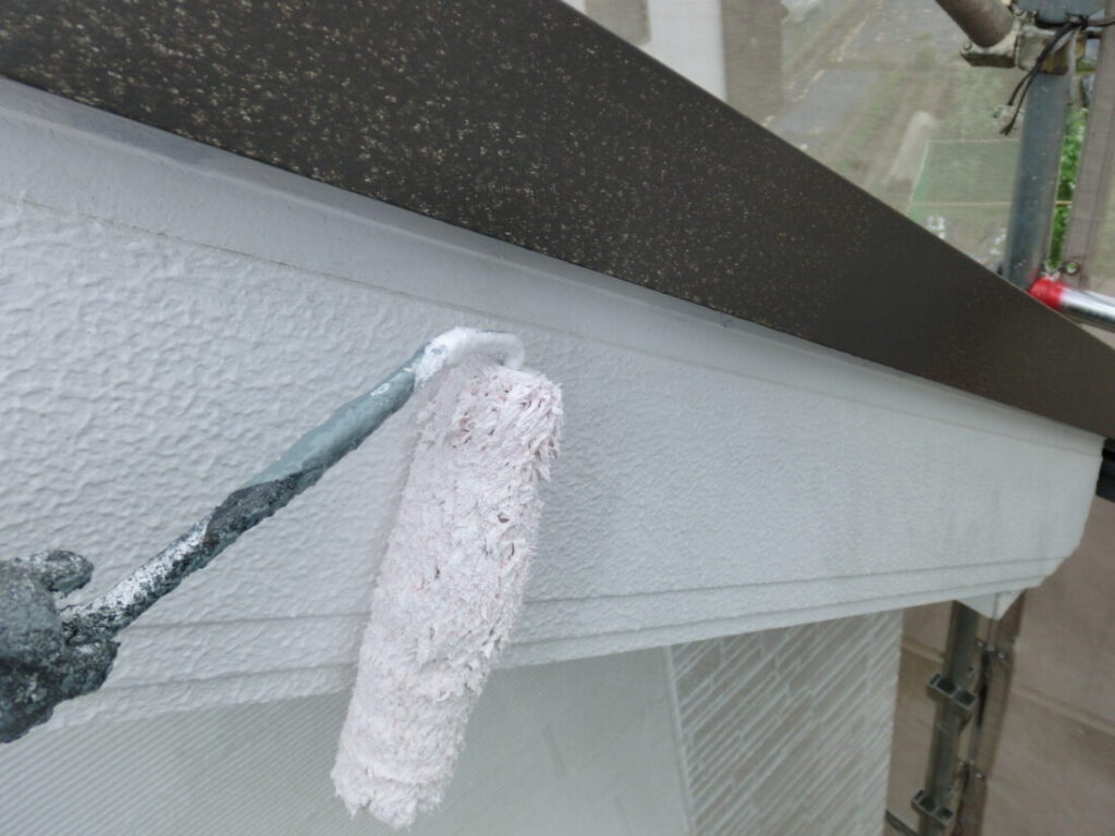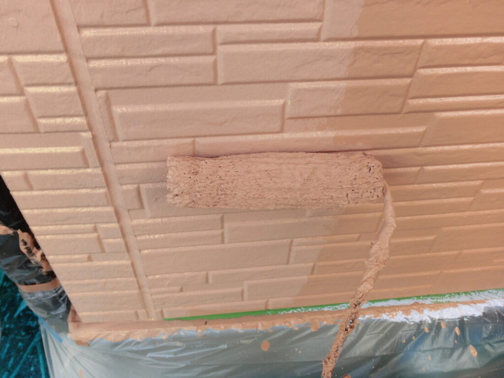 外壁の上塗り塗装です。外壁は3回塗りが基本です