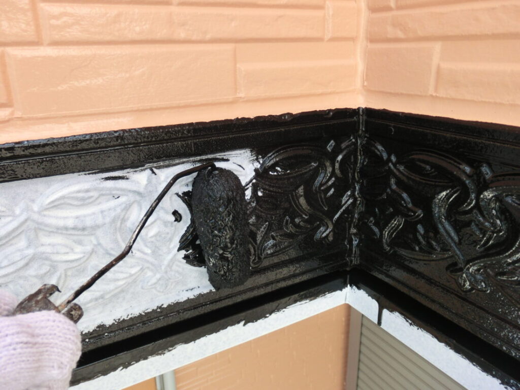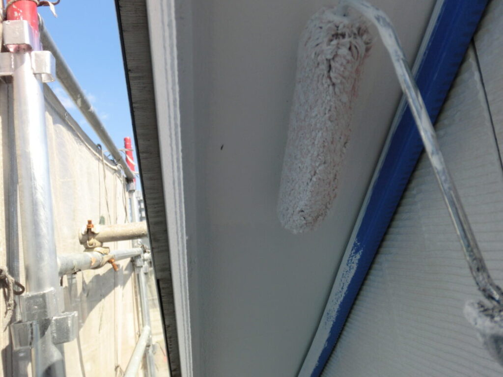 付帯部分に上塗り塗装を行います