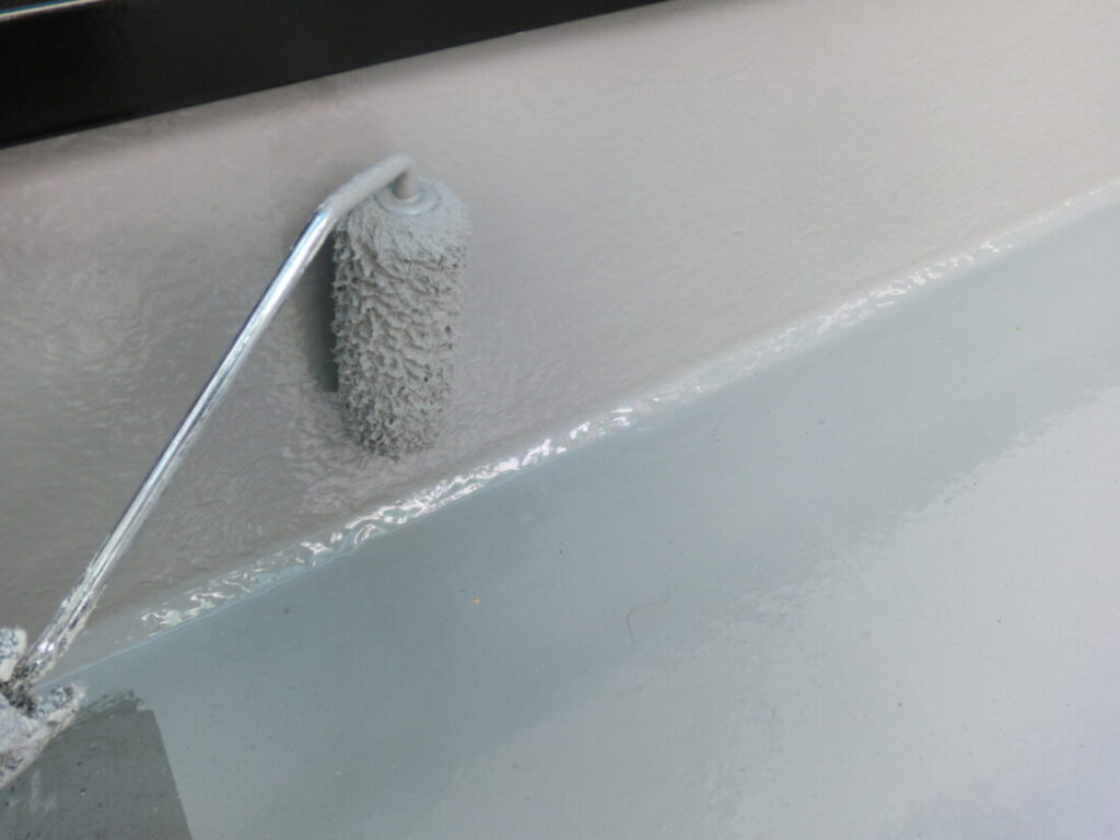 ベランダFRP防水の中塗り塗装です