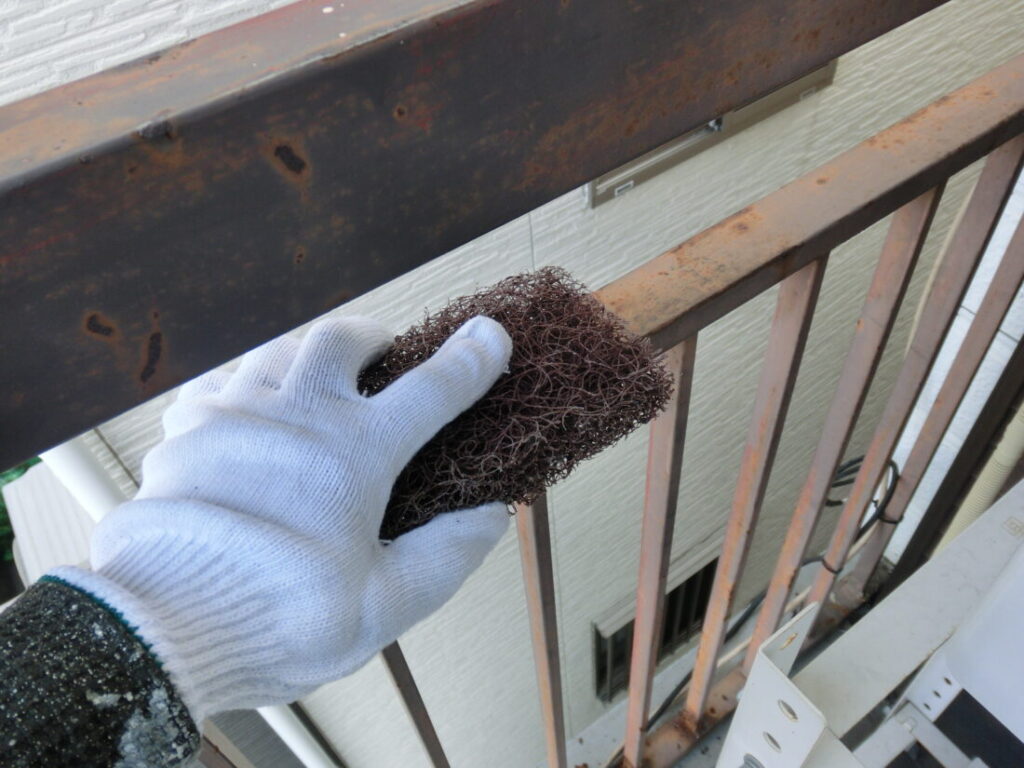 錆の発生や塗膜の剥がれなどの、鉄製手摺り特有の劣化現象が進んでいる状態でした。