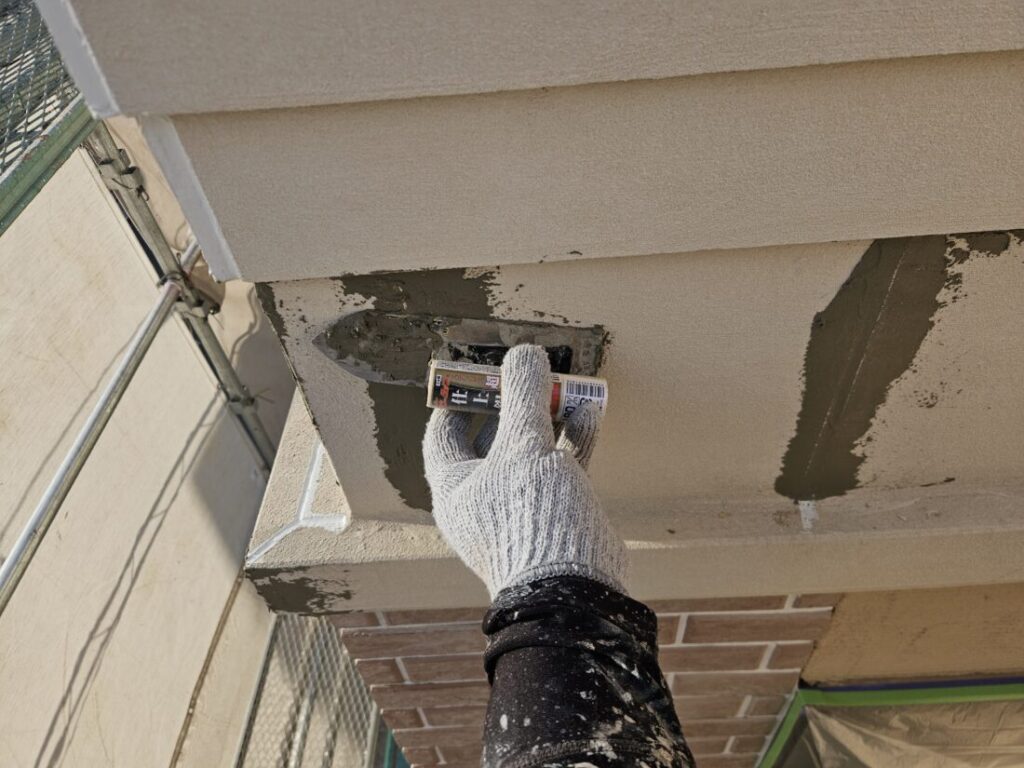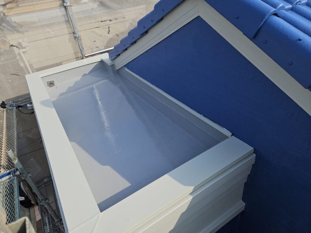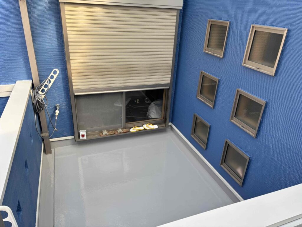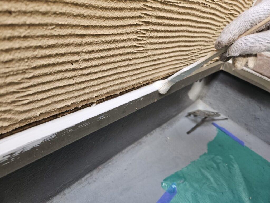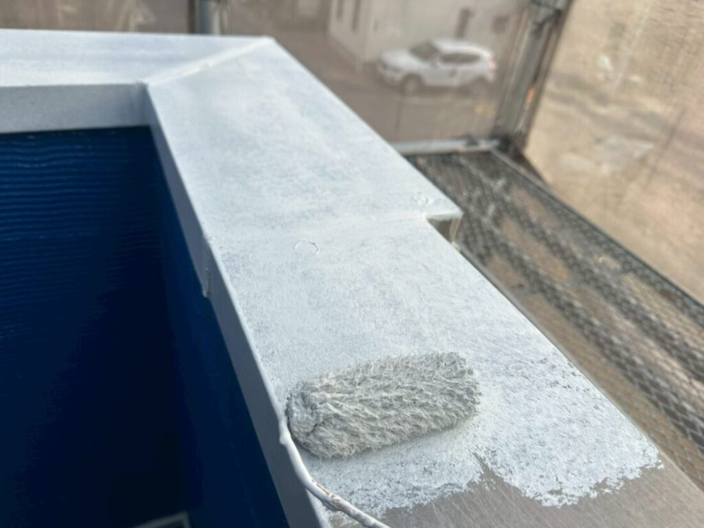 • ベランダFRP防水の上塗り塗装です。この様な部分も3回塗りを行います