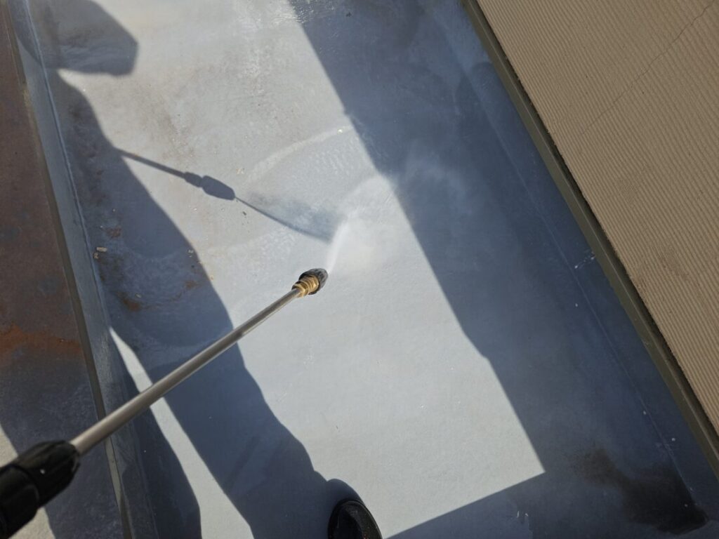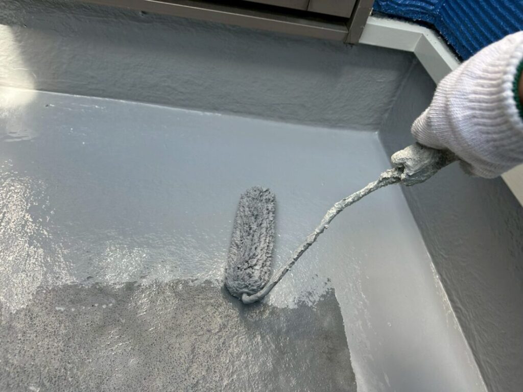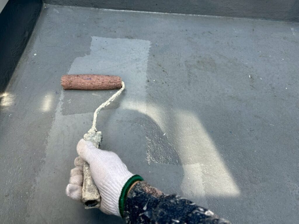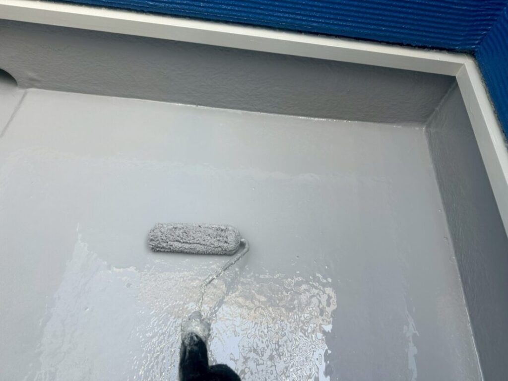 • ベランダFRP防水の下塗り塗装です。ベランダFRP防水も塗り替えを行います