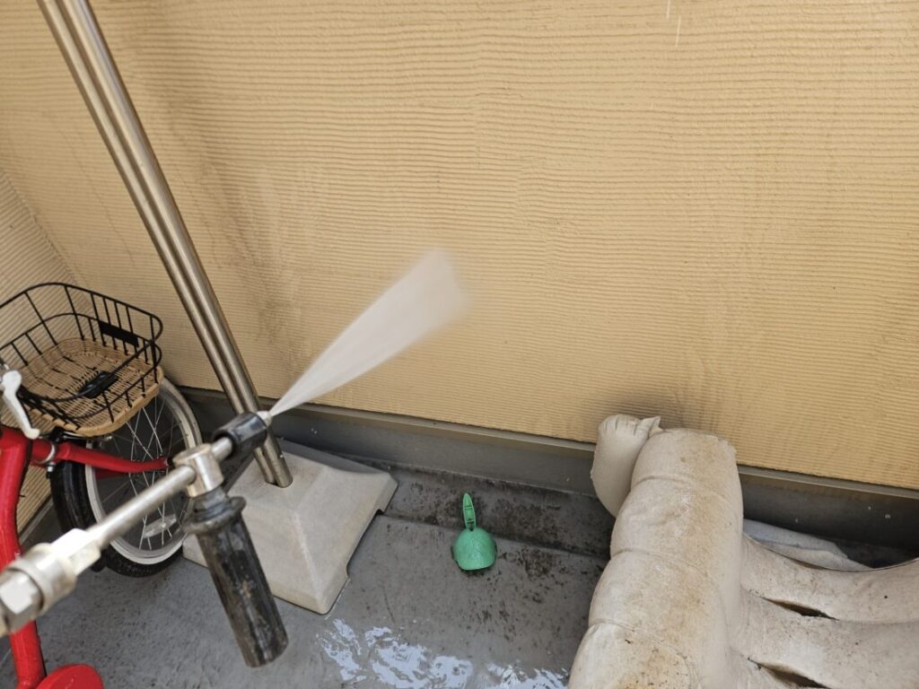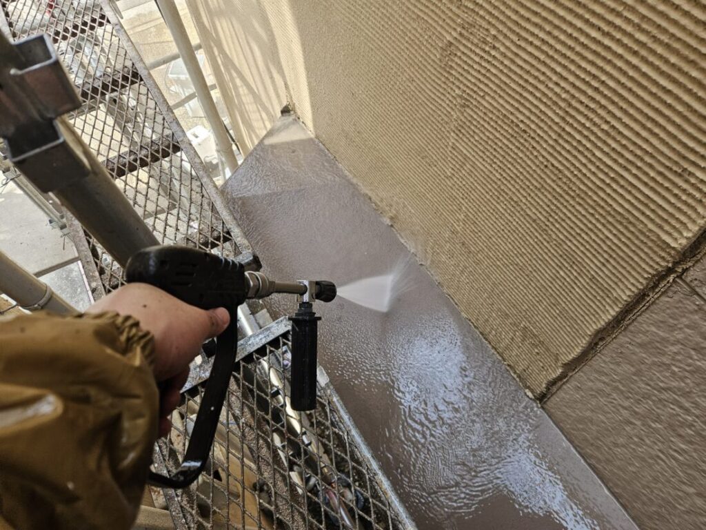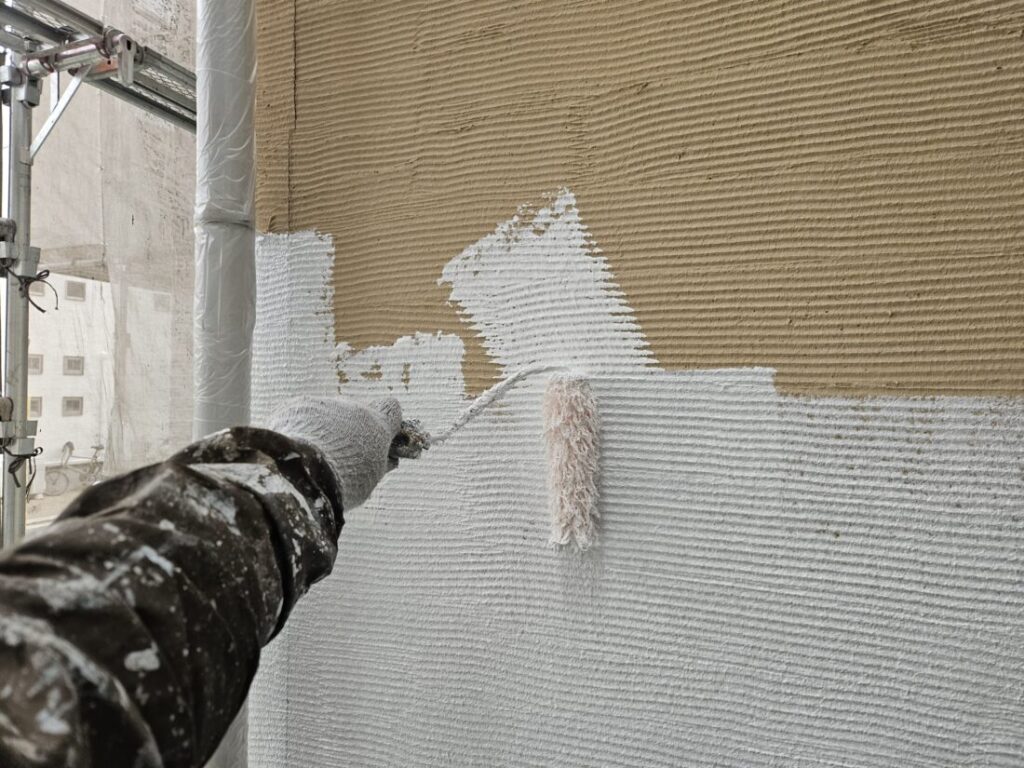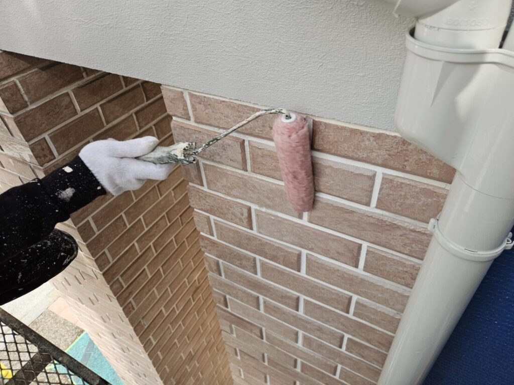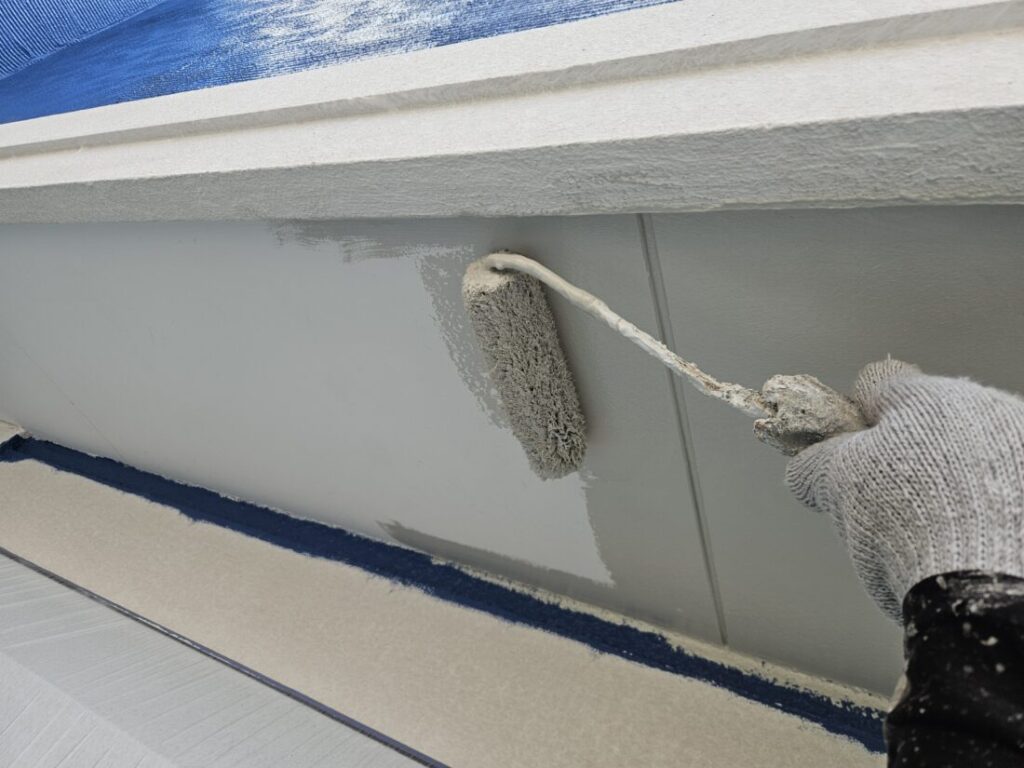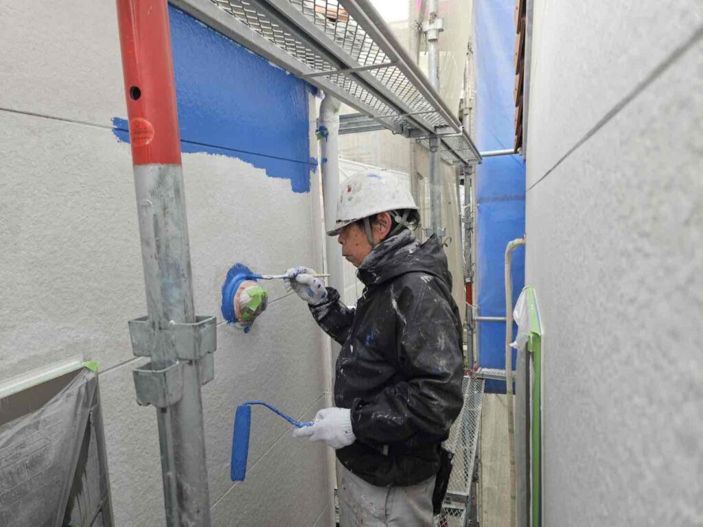 • 外壁の上塗り塗装です。外壁は3回塗りが基本です