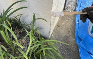 先日2年前に塗装工事のご依頼を頂いたお客様宅へ定期点検にお伺いいたしました。 ガレージ内へお車を駐車される時に、塗装済みの塀に少しだけこすってしまい、黒い色が付いてしまったとお聞きいたしましたの...